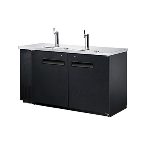 Direct Draw Beer Cooler, two-section, 16 cu. ft., (2) solid doors, (2) beer taps, (2) 1/2 barrel capacity, digital temperature control, interior LED lighting, stainless steel top, black vinyl back, sides & doors, epoxy coated aluminum interior, self-contained refrigeration, side mounted compressor, R290 refrigerant, 1/5 HP, 115v/60/1-ph, 3.0 amps, NEMA 5-15P, cETLus, ETL-Sanitation
