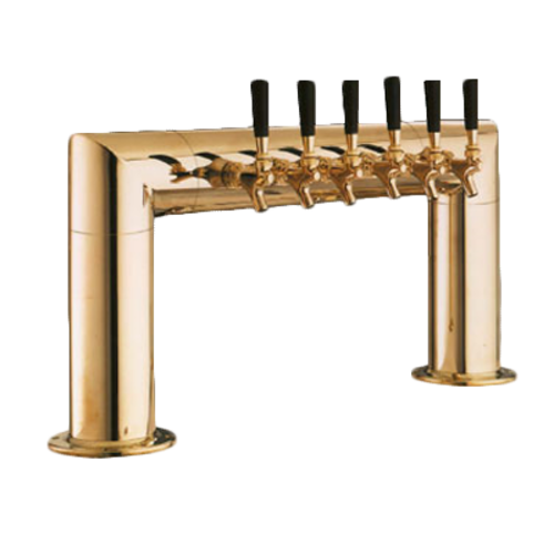 Pass-Thru Draft Beer Tower, countertop, 38"W x 14"H, glycol-cooled, accommodates (6) faucets (faucets sold separately), 4" OC, 10-3/8" faucet clearance, (2) 6" O.D. bases, tarnish-free brass finish