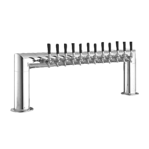 Pass-Thru Draft Beer Tower, countertop, 46"W x 14"H, glycol-cooled, accommodates (12) faucets (faucets sold separately), 3" OC, 10-3/8" faucet clearance, (2) 6" O.D. bases, polished chrome finish