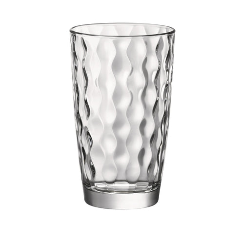Cooler Glass, 16 oz., glass, clear, Bormioli Rocco, Silk (H 5-5/8"; M 3-3/8"; T 3-3/8"; B 2-3/8") (minimum = case quantity) (stock item)
