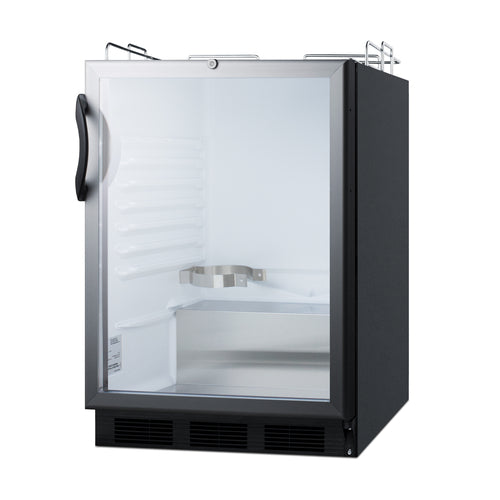 Draft Beer Cooler Dispenser, ADA compliant counter height, built-in or freestanding, front breathing, 24"W, 5.5 cu. ft. capacity, holds (2) 1/6 kegs, dial thermostat, +34° to +43°F temperature range, automatic defrost, stainless steel guard rail, removable stainless steel drip tray, (1) reversible right hinged glass door (locking), interior light, black cabinet, seamless interior liner with stainless steel floor cover, self contained bottom-mounted compressor, R600a Hydrocarbon refrigerant, 115v/60/1-ph, 1.8 amps, cETLus, ETL-Sanitation