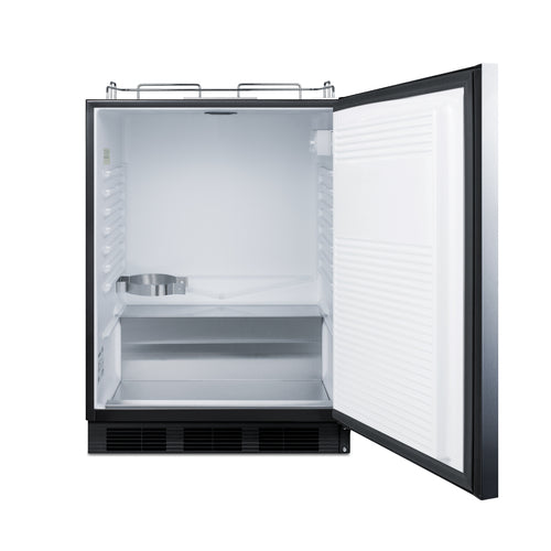 Draft Beer Cooler Dispenser, ADA compliant counter height, built-in or freestanding, front breathing, 24"W, 5.5 cu. ft. capacity, holds (2) 1/6 kegs, dial thermostat, +34° to +43°F temperature range, automatic defrost, stainless steel guard rail, removable stainless steel drip tray, (1) reversible right hinged 304 stainless steel door, thin horizontal brushed stainless steel handle, interior light, black cabinet, seamless interior liner with stainless steel floor cover, self contained bottom-mounted compressor, R600a Hydrocarbon refrigerant, 115v/60/1-ph, 1.2 amps, cETLus, ETL-Sanitation