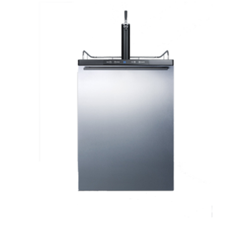 Draft Beer Dispenser, built-in or freestanding, 24"W, 5.6 cu. ft. capacity, holds half, quarter, 1/6 or mini kegs, digital thermostat, +33° to +50°F temperature range, deep chill function, automatic defrost, Sankey American tap system, single draft tower, 5 lb. CO2 tank & regulator, connection hardware, top guard rail, removable drip tray, (1) reversible right hinged stainless steel door, thin horizontal brushed stainless steel handle, black cabinet, stainless steel floor cover, (4) level legs & (4) casters, self contained rear-mounted compressor, R600a Hydrocarbon refrigerant, 115v/60/1-ph, 0.86 amps, cETLus (Residential)