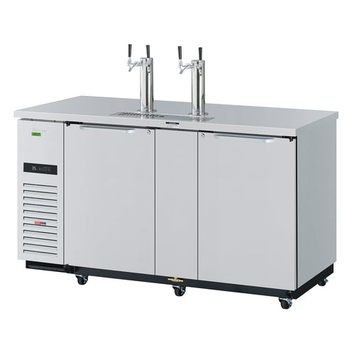 Super Deluxe Beer Dispenser, 69"W x 27-1/4"D x 37-1/8"H, self-cleaning condenser equipped, (2) swing doors with locks, stainless steel countertop & exterior, stainless steel inside walls & floor, galvanized steel interior top, (3) 1/2 barrel capacity, (2) 3" dia. stainless steel insulated beer columns with double faucet, door locks, recessed handles, side mount, front air intake, R290 Hydrocarbon refrigerant, 1/3 HP, 115v/60/1-ph, 2.5 amps, cord with NEMA 5-15P, ETL-Sanitation, cETLus, ENERGY STAR®