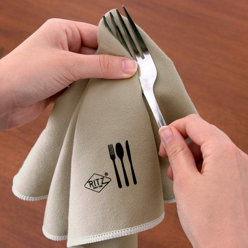 Ritz® Chef Line® Silverware Polishing Cloths, 16" x 16", lint free, microfiber, 88% polyester/12% polyamide, gray with white stitched edge (retail packaging) (pack of 6)