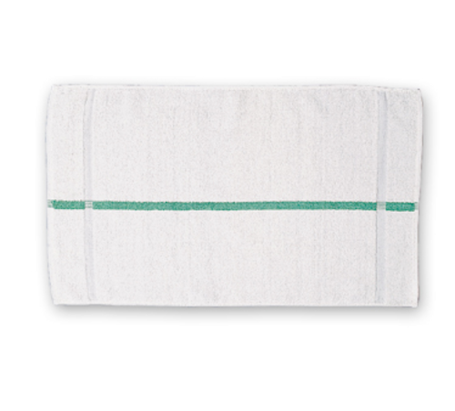 Chef Revival® Bar Towel, 100% cotton terry, 15" x 25", oversized, extra long, white with green stripe, 100% cotton terry, Chef 24/7®