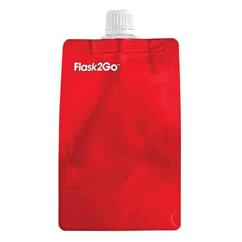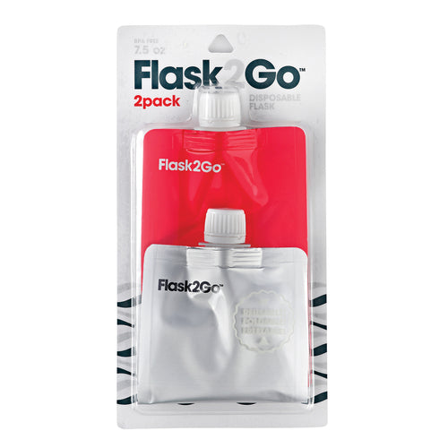 Flask2Go Flask, 7-1/2 oz., 7" x 3-3/4", wide mouth, leak-proof cap, foldable, reusable, & disposable, BPA free, plastic (carded) (set of 2)
