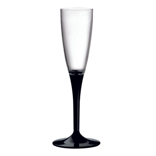 Champagne Glass, 5-1/8 oz., 9"H, dishwasher safe, polycarbonate, clear bowl with black stem & foot