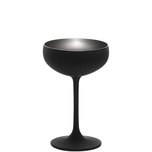 Stolzle Champagne Saucer Glass, 8 oz., 3-3/4" dia. x 5-3/4"H, dishwasher safe, coupe, black exterior, silver interior, matte finish, lead-free crystal glass, Glisten (24 each per case)