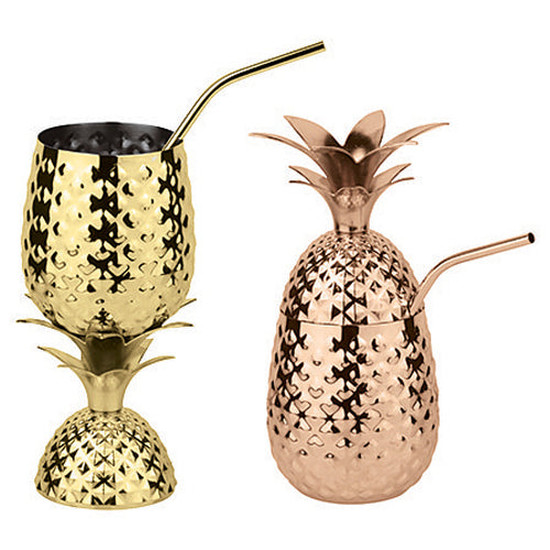 Pineapple Cup, 17 oz., 3-3/4" dia. x 8"H, with straw, stainless steel, gold finish, Paderno, Bar Supplies