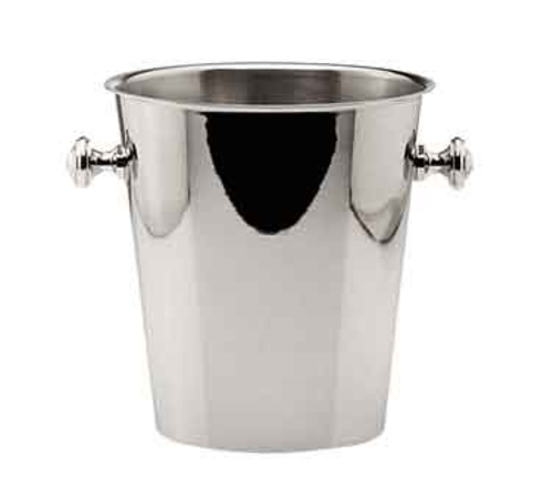 Wine Cooler, 9-1/8" dia. (231mm) x 9-3/4"H (247mm), holds 2 bottles, knob handles, 18/10 stainless steel, silver plate finish, Excellent by Hepp