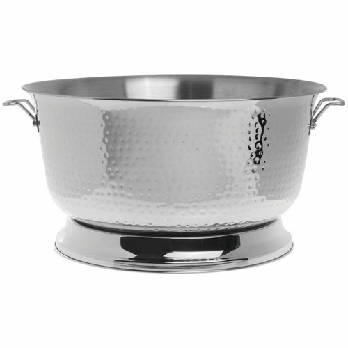 Ice Tub, 21-1/4" dia. x 11-3/8"H, single wall, dual side handles, stainless steel, brushed interior/polished hammered exterior