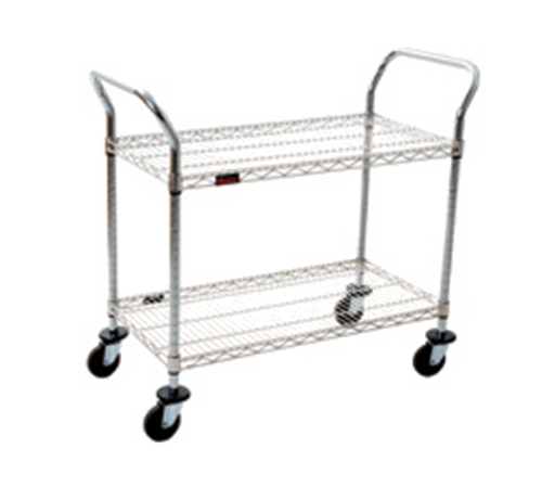 Utility Cart, 2-tier, 36"W x 18"D x 40"H, open base, wire shelves with patented QuadTruss® design, (2) handles, 500 lbs. capacity, stainless steel finish, 4" swivel casters with resilient tread, NSF