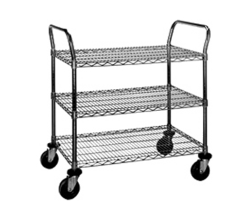 Utility Cart, 3-tier, 36"W x 18"D x 40"H, open base, wire shelves with patented QuadTruss® design, (2) handles, 500 lbs. capacity, EAGLEbrite® zinc finish, 4" swivel casters with resilient tread, NSF (FLYER)
