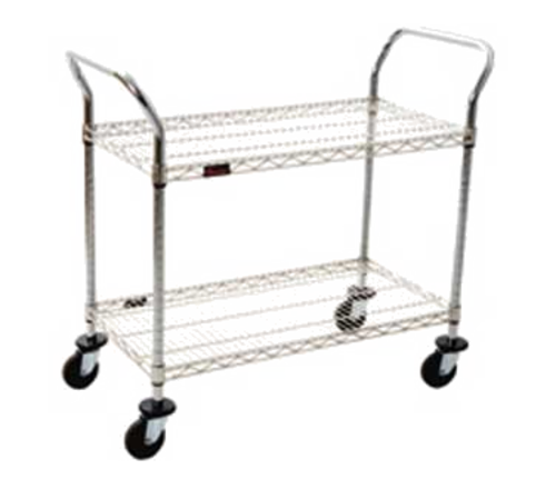 Utility Cart, 2-tier, 42"W x 18"D x 40"H, open base, wire shelves with patented QuadTruss® design, (2) handles, 800 lbs. capacity, EAGLEbrite® zinc finish, 5" swivel casters with resilient tread, NSF