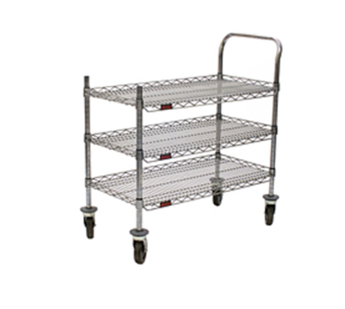 Red-i-Pak® Utility Cart, 3-tier, 36"W x 18"D x 36-1/2"H, wire shelves with patented QuadTruss® design, 1" built-in ledge on three sides, (1) handle, 500 lbs. capacity, chrome finish, donut bumpers, 4" casters with resilient tread, NSF (packaged in (1) box)