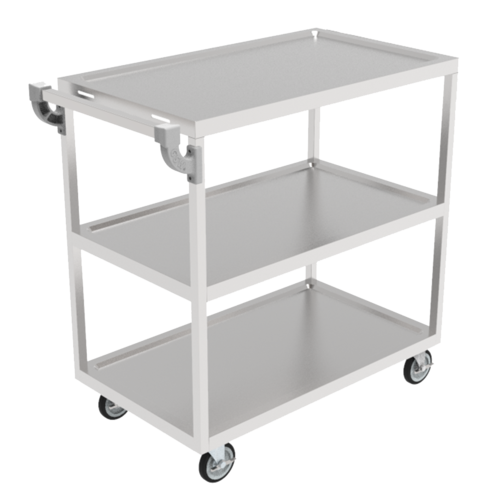 Bus Cart, 3-tier, 33-1/2"W x 18"D x 32-1/2"H, shelf size approximately 31-3/8" x 18", 18 gauge stainless steel construction, punch-hole design, (1) handle on short side, 300 lb. load capacity, 5" swivel casters, ETL