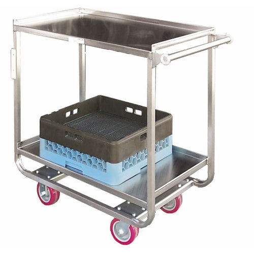 Utility Cart, 2-shelf, 38" x 20" x 38"H, 1100 lb. capacity, integrated handle, with bumpers, (4) 5" dia. casters (2 swivel, 2 rigid), reinforced tubing, stainless steel, NSF