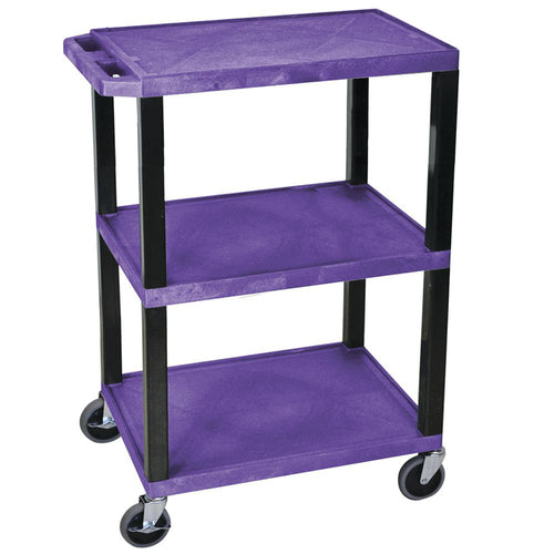 Allergen Awareness Utility Cart, 3-shelf, 24" x 18" x 34"H, 300 lb. capacity, integrated handle, 1/4" retaining lip, (4) 4" dia. casters, plastic, purple