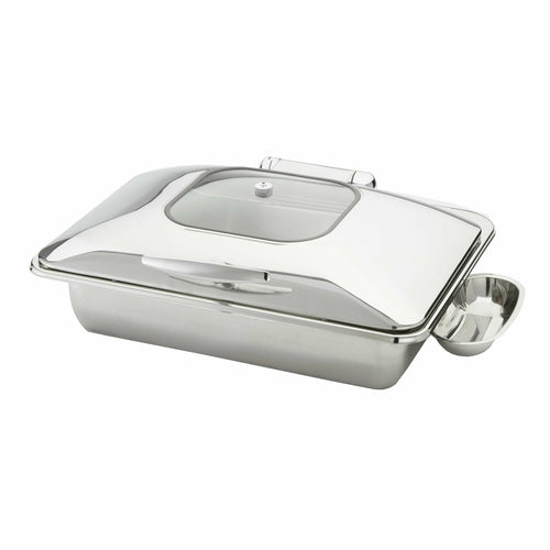 Evolution™ Chafer, 9 qt., 26"L x 18"W x 12"H, rectangular, induction ready, slow-release glass lid, built-in spoon rest, stainless steel
