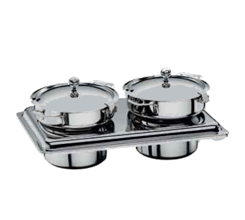 Soup Station, GN 1/1, quality II, includes: (1) 20-3/4" x 12-3/4" insert plate & (2) 157-1/2 oz. each soup tureens, lid, fits GN 1/1 chafing dish, 18/10 stainless steel, by WMF