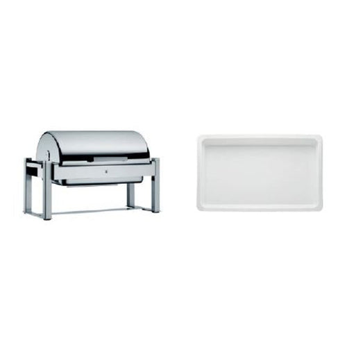 Chafing Dish Promo Kit, includes: (1) Manhattan 1/1 GN chafing dish with roll-top cover (06.3335.6041) & (3) 247 oz., 2-3/5" deep porcelain inserts (302611), Manhattan by WMF