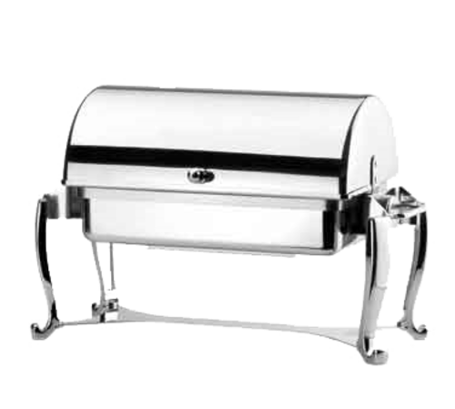 Chafing Dish, GN 1/1, 27-3/16"L (690mm) x 15-3/16"W (385mm) x 18-1/8"H (460mm), full roll-top lid, with burner holder, for burner or electrical heating, 18/10 stainless steel, Exclusive by Hepp (inserts & electrical heating not included)