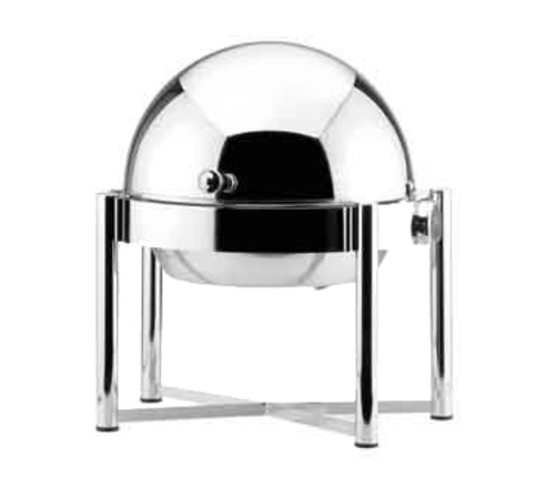 Chafing Dish, 11-9/11" dia. (300mm) x 17-11/16" W (450mm) x 18-7/8"H (480mm), full roll-top lid, with burner holder, stackable, stainless steel insert included, for burner or electrical heating, 18/10 stainless steel, Exclusive by Hepp (electrical heating & porcelain inserts sold separately)