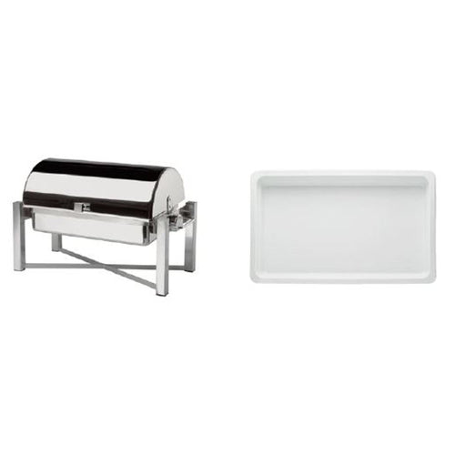 Chafing Dish Promo Kit, includes: (1) Arte 1/1 GN chafing dish with roll-top cover (12.5294.0320) & (3) 247 oz., 2-3/5" deep porcelain inserts (302611), Arte by Hepp