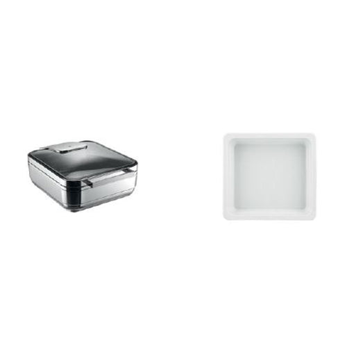 Chafing Dish Promo Kit, includes: (1) Manhattan 2/3 GN induction chafing dish (55.0021.6040) & (3) 160.6 oz., 2-3/5" deep porcelain inserts (302614), Manhattan, Hot & Fresh by WMF