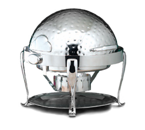 Elite Chafer, round, 2 gallon, stainless steel with chrome Roman legs, handles & medallions, dripless water pan & cover, windguard, full roll down & halfway locking cover, slow down lock mechanism, hammered finish, lifetime warranty