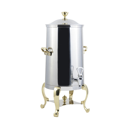 Coffee Urn/Server, 3 gallon, 10-3/4"W x 13-1/2"D x 27-1/2"H, insulated, stainless steel exterior construction with brass trim, contemporary handle, must be brewed at 200° F or higher to maintain temperature for 3 hours, Roman