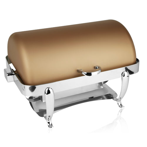 Park Avenue Collection Chafer, 8 qt., rectangular, rolltop cover stops at any angle, 180° full rollback, includes dual sterno holders, food and water pans, 18/10 stainless steel, XYLO bronze finish with Anti-Microbial 24/7 germ-free surface coated lid, 5 Star Series (made to order, non-returnable)