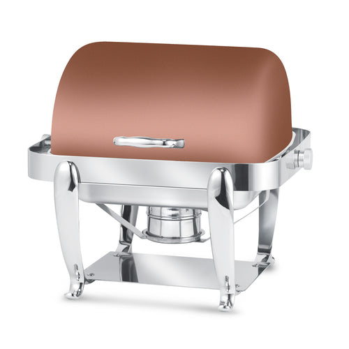 Park Avenue Collection Chafer, 4 qt., rectangular, rolltop cover stops at any angle, 180° full rollback, includes sterno holders, food and water pans, 18/10 stainless steel, XYLO copper finish lid with Anti-Microbial 24/7 germ-free surface coating, 3 Star Series (made to order, non-returnable)