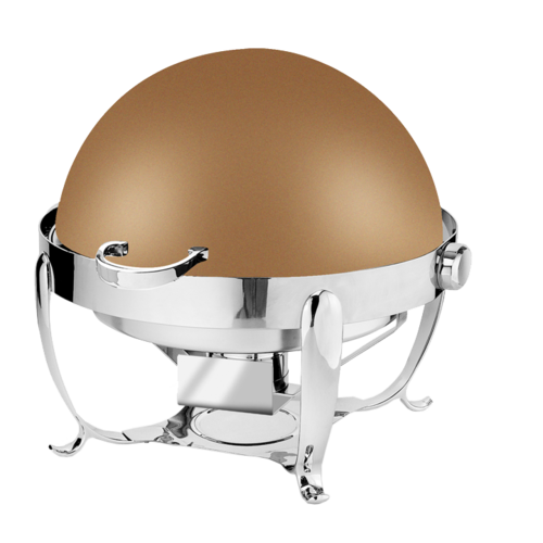 Park Avenue Collection Chafer, 8 qt., round, rolltop cover stops at any angle, 180° full rollback, includes dual sterno holders, food and water pans, 18/10 stainless steel, XYLO black bronze finish lid with Anti-Microbial 24/7 germ-free surface coating, 5 Star Series (made to order, non-returnable)