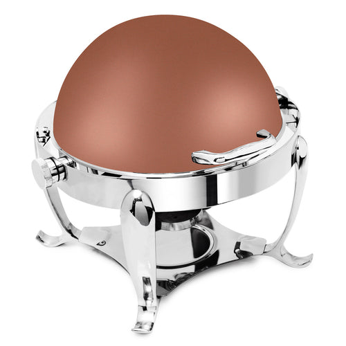 Park Avenue Collection Chafer, 4 qt., round, rolltop cover stops at any angle, 180° full rollback, includes sterno holders, food and water pans, 18/10 stainless steel, XYLO copper finish with Anti-Microbial 24/7 germ-free surface coated lid, 3 Star Series (made to order, non-returnable)