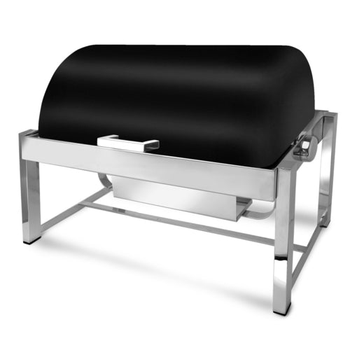 P2 Pillar'd Squared Chafer, 8 qt., rectangular, rolltop, stackable, drip free feature with condensation catch, rubber tipped legs, stainless steel, XYLO black finish with Anti-Microbial 24/7 germ-free surface coated lid, 5 Star Series (made to order, non-returnable)