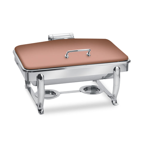 Park Avenue Induction Chafing Dish, 8 qt., rectangular, Stop-N'-Go hinged dome lid, with stand, works on all induction warmers/cookers/or as a chafer tabletop, stainless steel, XYLO copper finish with Anti-Microbial 24/7 germ-free surface coating, 4 Star Series (made to order, non-returnable)