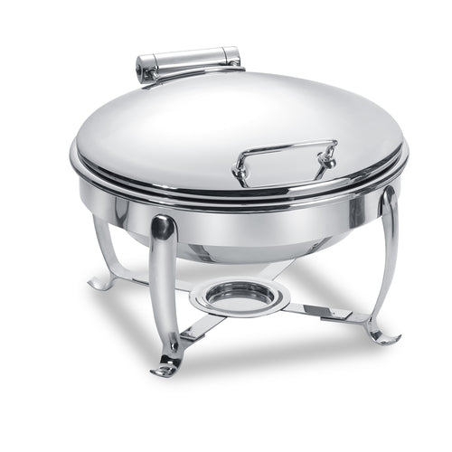 Park Avenue Induction Chafing Dish, 6 qt., round, Stop-N'-Go hinged dome lid, with stand, works on all induction warmers/cookers/or as a chafer tabletop, stainless steel, brushed finish, 4 Star Series (made to order, non-returnable)
