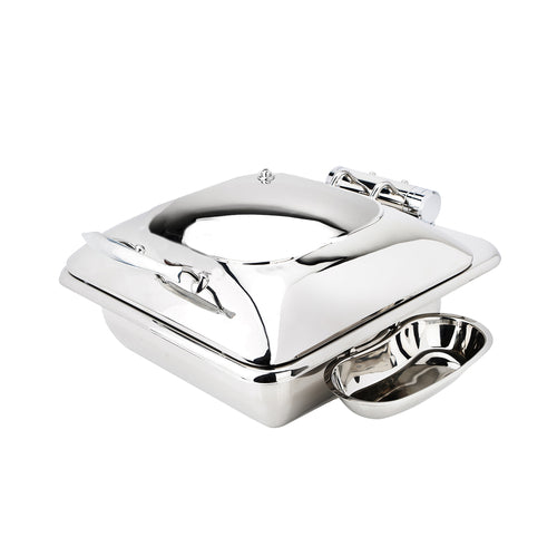 Crown Collection Induction Chafer, 6 qt., square, without stand, includes: hinged lid with drip free feature, food pan, vessel works as a water pan, hydraulic hinged slowed letdown mechanism, locks in at 180°, removable clip on utensil holder, brake lock system, works on all induction warmers/cookers/or as chafer tabletop, 18/10 stainless steel, brushed finish, 5 Star Series (made to order, non-returnable)