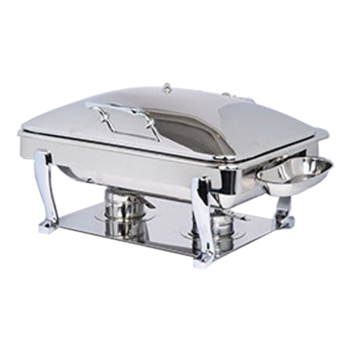 Crown Collection Induction Chafer, 8 qt., oblong, includes: hinged lid with drip free feature, Freedom style stand, food pan, vessel works as a water pan, sterno holder, removable clip on utensil holder, brake lock system, works on all induction warmers/cookers/or as chafer tabletop, 18/10 stainless steel