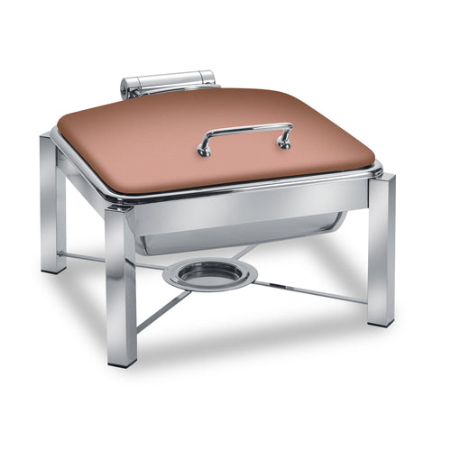 Pillar'd Induction Chafing Dish, 6 qt., square, hinged dome lid, with stand, food pan and sterno, non-skid rubber feet, works on all induction warmers/cookers/or as a chafer tabletop, stainless steel, XYLO copper finish with Anti-Microbial 24/7 germ-free surface coated lid, 4 Star Series (made to order, non-returnable)