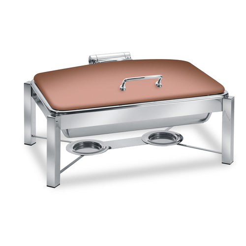 P2 Pillared Square Induction Chafing Dish, 8 qt., rectangular, Stop-N'-Go hinged dome lid, with stand, food pan and sterno, non-skid rubber feet, works on all induction warmers/cookers/or as a chafer tabletop, stainless steel, XYLO copper finish with Anti-Microbial 24/7 germ-free surface coated lid, 4 Star Series (made to order, non-returnable)