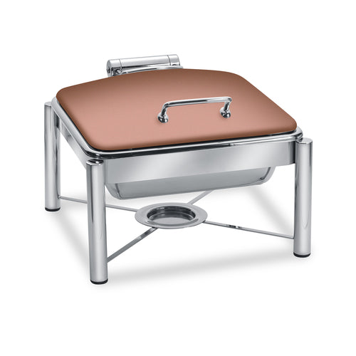 Pillar'd Mid/Max Collection Induction Chafing Dish, 6 qt., square, hinged dome lid, with stand, food pan and sterno, non-skid rubber feet, works on all induction warmers/cookers/or as a chafer tabletop, stainless steel, XYLO copper finish with Anti-Microbial 24/7 germ-free surface coated lid, 4 Star Series (made to order, non-returnable)