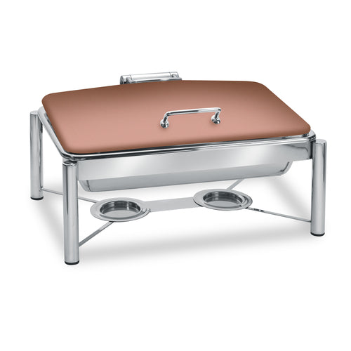 Pillar'd Mid/Max Collection Induction Chafing Dish, 8 qt., rectangular, hinged dome lid, with stand, food pan and sterno holder, non-skid rubber feet, works on all induction warmers/cookers/or as a chafer tabletop, stainless steel, XYLO copper finish with Anti-Microbial 24/7 germ-free surface coated lid, 4 Star Series (made to order, non-returnable)