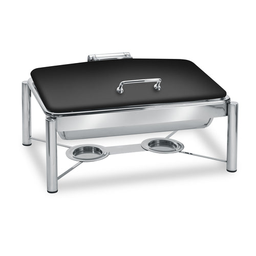 Pillar'd Mid/Max Collection Induction Chafing Dish, 8 qt., rectangular, hinged dome lid, with stand, food pan and sterno holder, non-skid rubber feet, works on all induction warmers/cookers/or as a chafer tabletop, stainless steel, XYLO black finish with Anti-Microbial 24/7 germ-free surface coated lid, 4 Star Series (made to order, non-returnable)