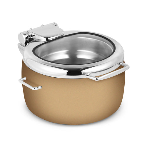 Jazz Rock Collection Induction Soup Chafer, 11 qt., round, full glass hinged cover, hydraulic hinged slowed letdown mechanism (locks in at 180°), works on all induction warmers/cookers/or as a chafer tabletop, 18/10 stainless steel, XYLO bronze finish with Anti-Microbial 24/7 germ-free surface coated base only, 5 Star Series (made to order, non-returnable)