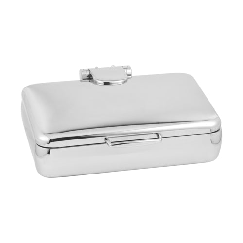 Jazz Rock Collection Induction Chafer, 8 qt., rectangular, hotel grade, full hinged cover, 3-points of drip free feature with condensation catch, includes food pan, hydraulic hinged slowed letdown mechanism (locks in at 180°), works on all induction warmers/cookers/or as a chafer tabletop, 18/10 stainless steel, brushed finish, 7 Star Series (made to order, non-returnable)