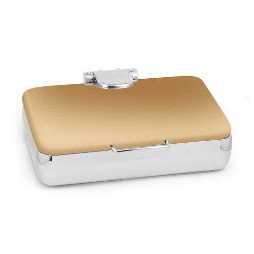 Jazz Rock Collection Induction Chafer, 8 qt., rectangular, hotel grade, full hinged cover, 3-points of drip free feature with condensation catch, includes food pan, hydraulic hinged slowed letdown mechanism (locks in at 180°), works on all induction warmers/cookers/or as a chafer tabletop, 18/10 stainless steel, XYLO bronze finish with Anti-Microbial 24/7 germ-free surface coated lid, 7 Star Series (made to order, non-returnable)