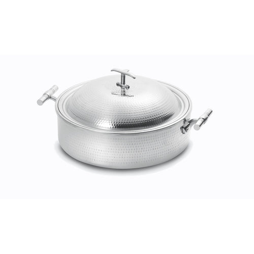 Cook Buffet Collection Induction Chafing Dish, 6 qt., round, lift-off dome lid, side handles, includes pot & food pan, dishwasher safe, 3-ply, stainless steel, hammered finish, 5 Star Series